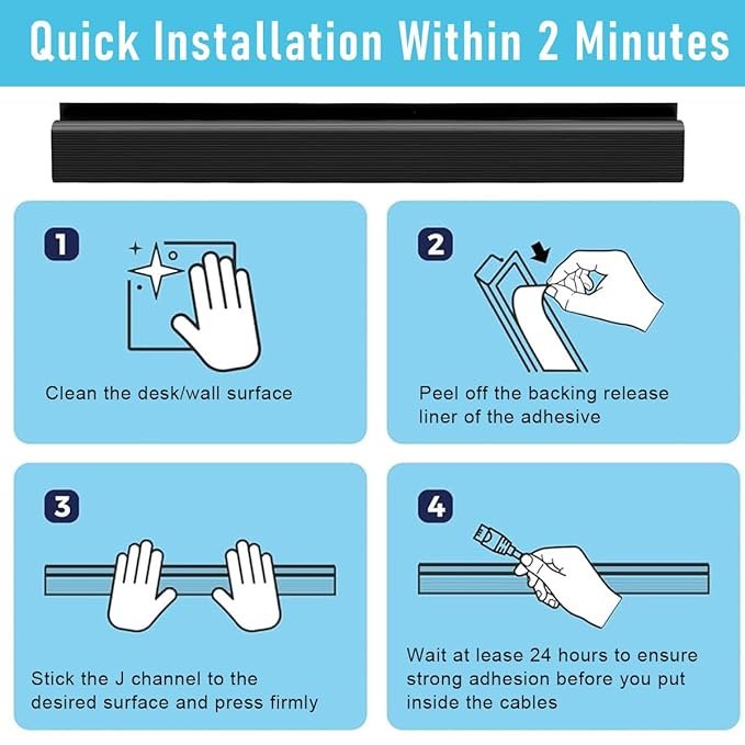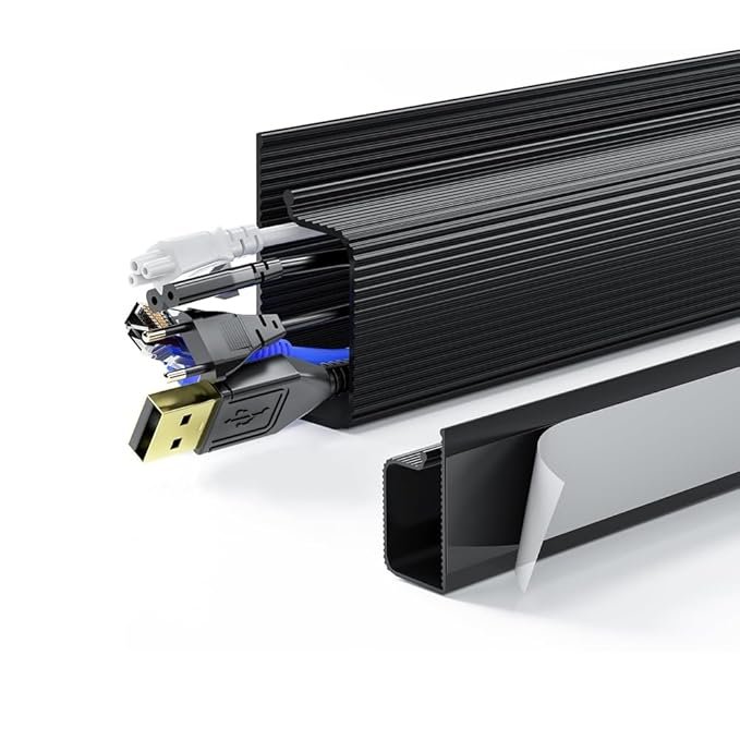 - EASY NO-TOOLS INSTALLATION: Say goodbye to complicated setups. Thanks to its heavy-duty self-adhesive backing, this cable raceway sticks securely under your desk within minutes, no screws, no drilling required! Save time and effort while creating a clean workspace that instantly looks organized and professional.