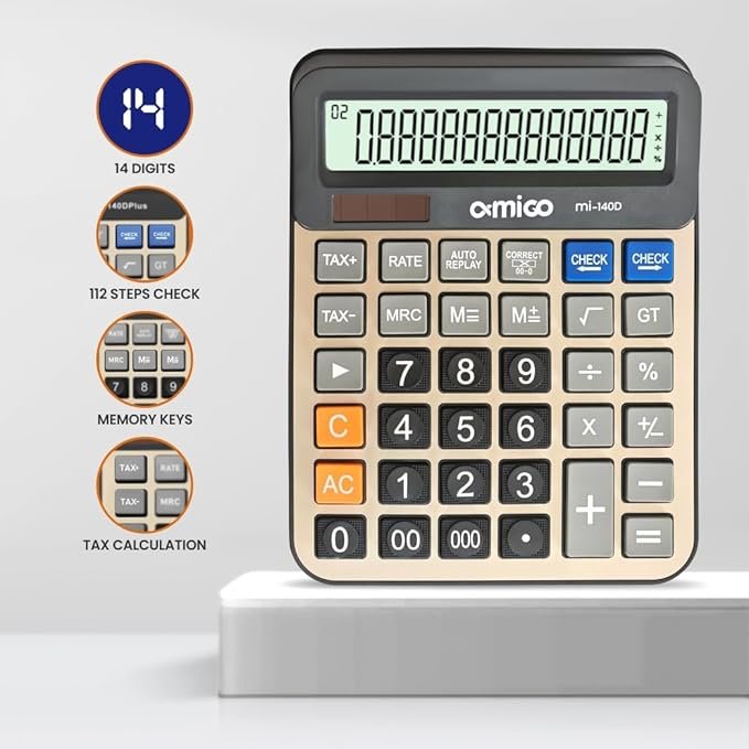 - BUSINESS FUNCTIONS: Features tax calculation, memory functions, auto replay, and grand total (GT) for efficient business computations
