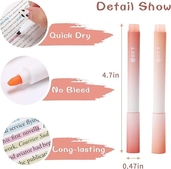 - 【Multiple Colors】Our aesthetic highlighters offer 12 bright and vibrant colors that are perfect for making your writing stand out and drawing attention to key points. The colors are vibrant but not dark. The light colors are good for eye protection and look great on paper.