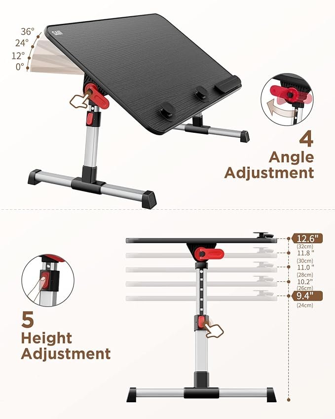 - ๐๐๐ฃ๐ฎ๐ฌ๐ญ๐๐๐ฅ๐ ๐๐๐ข๐ ๐ก๐ญ ๐๐จ๐ซ ๐๐๐ซ๐๐๐๐ญ ๐๐จ๐ฆ๐๐จ๐ซ๐ญ ๐๏ธ๐ง – Whether you’re working on the sofa or using a laptop table for bed, this height-adjustable desk offers 5 levels (24 cm โ 32 cm) giving you the ideal stance to work or relax. Maintain better posture and prevent neck/back strain with this adjustable laptop table design.