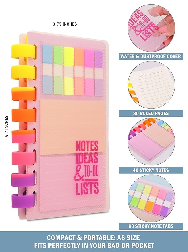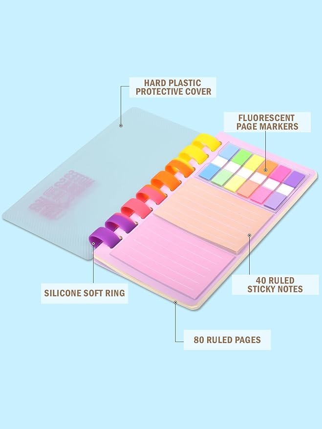 - 📚 Large Ruled Sticky Notes: Includes 40 ruled sticky notes with plenty of writing space for jotting down ideas, notes, and reminders.