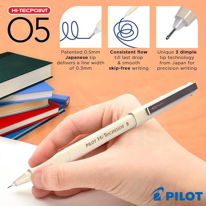 - Pilot hi tech 05 pen with unique 3-dimple fine tip technology for precision writing. Made of plastic material.