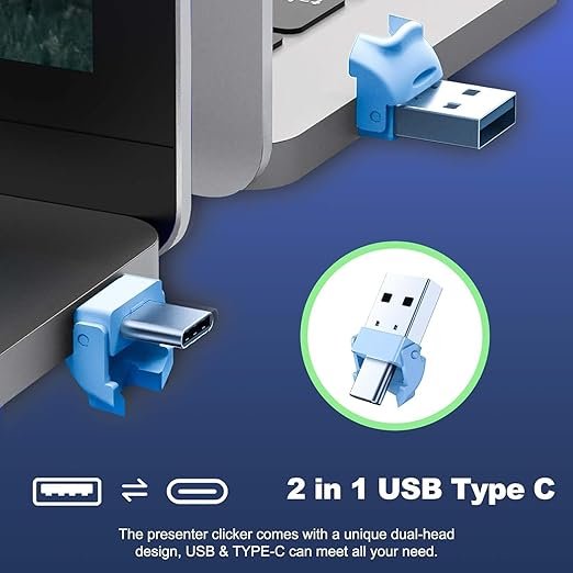 Rts USB/Type-C 2 in 1 Laser Pointer |Wireless Presenter for Presentation | Slide Changer, USB Power Point Remote Control Pen | for Google Slides/Keynote/PPT/Mac/PC/Computer/Laptop/Projector (Blue)