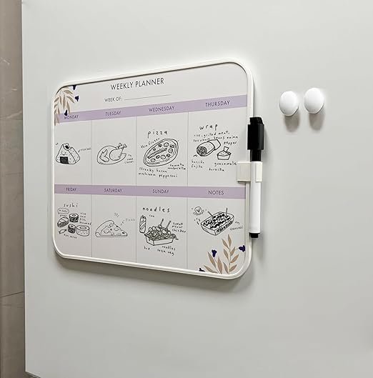 • Complete Set: Comes with a dry-erase marker and two mini magnets (for sticky notes or any photographs), providing everything you need to start planning your weekly meals.